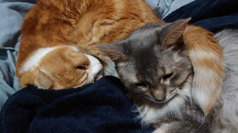 喧嘩することもあった二匹ですが写真のように二匹仲良く寝ている時もありとても微笑ましかったのを憶えています。今までありがとう。